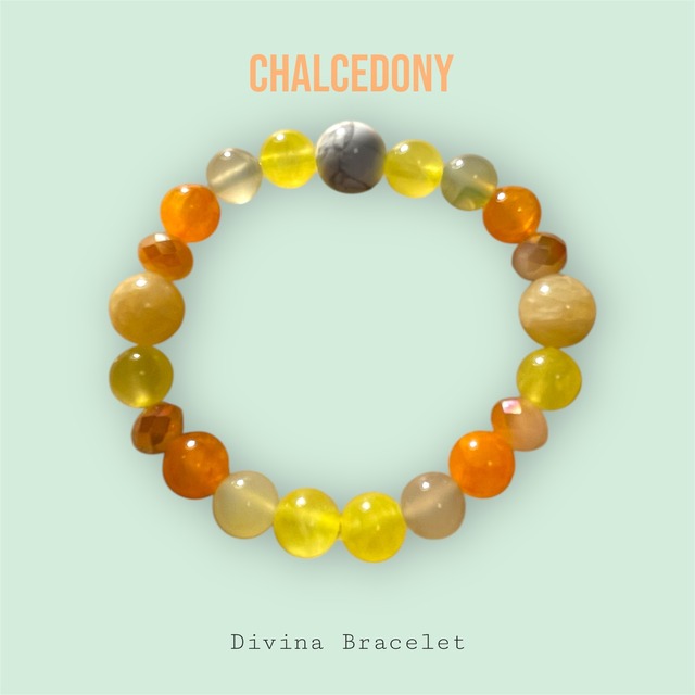 カルセドニーブレスレットは カルセドニー、ハニーストーン、ハウライト、 ジェイドの組み合わせになっており、 内面の成長、積極性、存在感を引き出す助けをしてくれます。 サイズ 17cm レディース ゴムブレスレット 明るく甘酸っぱさとお日様の香りがするようなブレスレットです。 ハウライト 平穏、叡知、純粋などを象徴する石といわれています。 心身を浄化して循環力をアップし、環境への順応力を高める効果を持っているとされています。 地に足がついたポジティブな思考や、マイナスのエネルギーを跳ね返したいという方に使われてきたそうです。 ジェイド 内面の成長や肉体的な健康維持に良い石です。平和なパワーを持つ石ですので、心の正常やリラックス、ヒーリングにも向いています ハニーストーン 正式名をアラゴナイト(霰石 あられいし)と言い、主に自己ピーアールなどの表現力を高め人間関係を活性化させてくれます。 黄色味の強いものをハニーストーンと呼んでいます。 内気で消極的だと思いこんでいる人の内面から積極性や存在感を引き出してくれます。「人脈の石」 カルセドニー 魂に直接働きかけ、心の混乱を解き放って高ぶった感情を鎮める効果があると伝えられています。 カルセドニーの石言葉は達成能力、開放、先見の明、社交性、自由、思いやり、自信、冒険心。 ヒーリング効果としては、社交性を高めたり、楽天的になれるように導いたり、精神的な緊張を緩和させたり、人間関係の問題解決、良好な人間関係などがあります。 人と人の絆や結びつきを意味する石で、強いリラックス効果があるので、日々の生活で疲れた身体や、イライラした心を癒したい人におすすめの石です。 オレンジ その微細なエネルギーと支え合うエネルギーから、協力し合うこと、小さな愛が集まって大きな愛を開かせる象徴のパワーストーンです。元気なオレンジ色のカルセドニーは、現実的なエネルギーを高めるので、仕事の成功や、目標を達成したいとき、人間関係の調和を願うとき、自信が欲しい時などのサポートに。 イエロー 一般的に明るさ、喜び、希望、活力、幸運、成功を象徴します。 明るい黄色の色合いからポジティブな感情を促進し、ストレスの軽減や自己表現の促進に役立つと信じられています。 また、幸運や成功に向けた運を引き寄せる力があるとされており、新たな始まりや変化への支援を提供するとも考えられています。 Divina AmoRは、 1点1点、全て手作業で心を込めて製作しておりますので同じデザインのもでも少しずつ個体差があり、全てに色味を感じて頂けるアクセサリーとなっております。 使用しているパーツも 特に天然石、ビーズを使ったアクセサリーはひと粒ひと粒の型や色に違いがございます。 ディヴィナのアクセサリーは そのひと粒の違いもニュアンスやその物のカラーと捉えており、 更に1点1点に個性がでるデザインをそのまま楽しんで頂けたら幸いです。 ディヴィナアモールは 金属アレルギーの方の為にもなるべくアレルギー反応が少なくなるように心がけ製作しておりますが、 全てにおいて100%の保証はございません。 お買い求めの際はお客様の判断となります。 ご理解の上ご了承くださいますようお願い致します。
